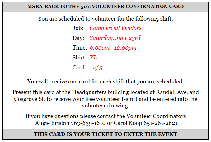 Confirmation Card